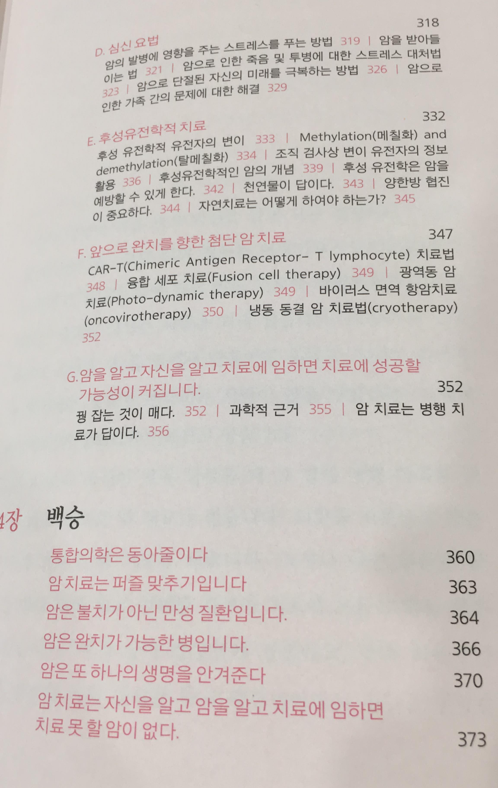 암과 자신에 대해서도 나와있지만, 치료는 어떠한 것들이 있는지 자세하게 나와있습니다.